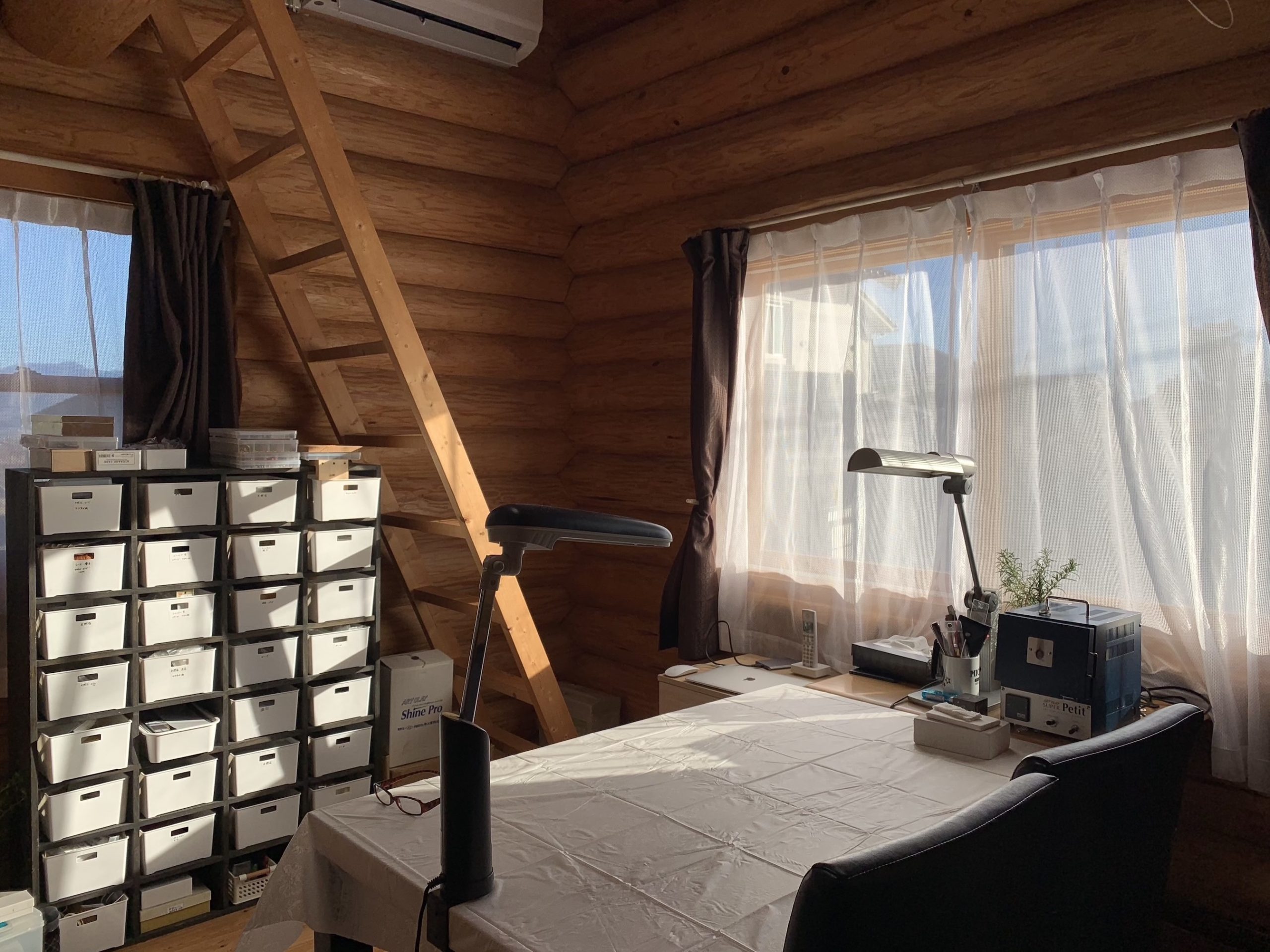 天然石の美しさが引き立つようロウビキ紐で編み上げました。